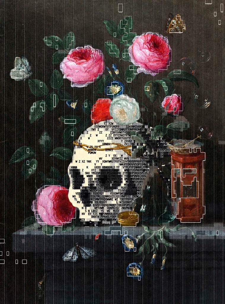 Dutch still life feels cliche but I do like the mix of pixel outlines against it